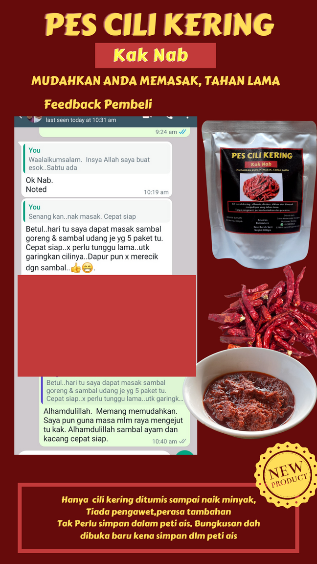 Kami menjual pes asam pedas, pes ibusambal, pes cili kering, sambal garing bilis, sos cili, doorgift sos cili,lemon kering, serta kelas online.